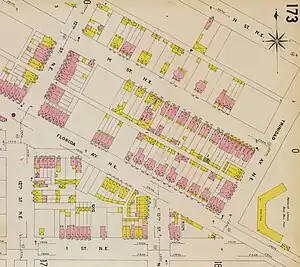 The ballpark's left-field fence would become Neal Street NE; its third-base line ran along Trinidad Avenue; its first-base line ran along Florida Avenue NE; and its right-field fence ran along present-day Bladensburg Road.[2]