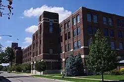 The American Seating Company factory complex consists fourteen contributing buildings and two non-contributing buildings, ranging in date from 1888 to 1978, located in a parcel about twenty acres in size. The site runs along Broadway from Seventh to Eleventh Street. The 1888 factory building was located along the northern side of Ninth Street. This was a four-story cream brick building. The 1923 power plant and warehouse are located along Seventh Street. These buildings are four-story brick structures. Additional buildings, dating from the early 1900s through the 1970s, are located along Eleventh Street and south toward Ninth.[2]