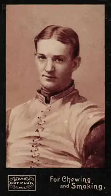 The first entire set of cards to focus on American football players was printed by the Mayo Cut Plug Tobacco Company, which released a 35-card set in 1894,[3][4][5] featuring players from the schools that became the Ivy League.[1]