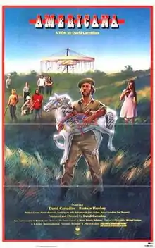 Americana is a 1981 American drama film starring, produced, edited and directed by David Carradine. The screenplay and story, written by Richard Carr, was based on a portion of the 1947 novel, The Perfect Round, by Henry Morton Robinson. The novel's setting was originally post-World War II, but the screenplay involved the post-war experiences of a Vietnam War veteran, obsessed with restoring an abandoned carousel.[1][2]
