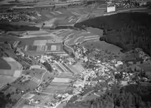 While some scattered Neolithic items have been discovered in Ammerswil, the first known settlement was an Alamannic farmhouse. The village of Ammerswil is first mentioned in 924 as Onpretiswilare. In 1306 it was mentioned as Ombrechtzwile.[3] It was ruled successively by the Counts of Lenzburg, Kyburg and Habsburg, and then in 1415 by the city-state of Bern. Starting in the 13th century, the rights to low justice and tithes were held by the Lords of Hallwyl. In the 14th century, these rights changed hands several times (the Freiherr of Fridingen, Freiherr of Grünenberg and the Lords of Ballmoos). In 1484 these rights transferred to Bern, which annexed Ammerwil into the court of Othmarsingen in the Lenzburg district (Oberamt Lenzburg).