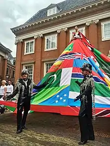 The Amsterdam Rainbow Dress is a dress made of more than 70 flags of nations where same-sex relations are illegal,[1] commemorating LGBT+ victims of persecution. The dress has a diameter of 52 feet and has been displayed in San Francisco,[2][3] Cape Town,[4] and Ottawa,[5] among other cities.