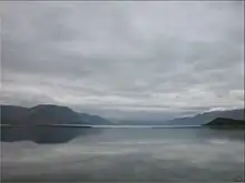 A large part of the district is covered by the Anadyr Valley, consisting of two distinct sections: a plain extending from Anadyrsky Liman in the east approximately 500 kilometers (310 mi) to Markovo and a more elevated region within the Shchuchy Range.[13] For a district dominated by a major river and its tributaries, it is unsurprising that the interior is dominated by wetlands covering tens of thousands of square kilometers.[13] These wetlands create innumerable small lakes, although only there is only one large lake, Lake Krasnoye with the area of 458 square kilometers (177 sq mi), in the entire district.[13] The Anadyr Valley opens out into a large estuary containing the Onemen Bay and the Gulf of Anadyr. The district is also home to Lake Elgygytgyn, found in the center of an impact crater created just under three and a half million years ago.[14]