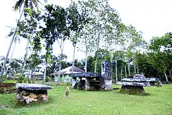 There is debate on the exact age of the site; radiocarbon dating has not been done to affirm this categorization. The stone schist grave with three adzes in it is inferred to be post-neolithic though no iron objects were found. The quadrangular adzes found in a small cist do not exhibit characteristics of the Neolithic age and may be post-neolithic.[2] The tradition of building megalithic tombs has continued to the present age in West Sumba. Anakalang is said to be one of the few locations where the social practices and the traditional methods followed to build megaliths can still be seen. In 1880, Umbu Dongu Ubini Mesa became the first raja of Anakalang. In 1927, Umbu Sappy Pateduk succeeded to the title.[7] Umbu Remu Samapati was the third raja, and his brother-in-law, Umbu Sulung Ibilona, succeeded him.[8]