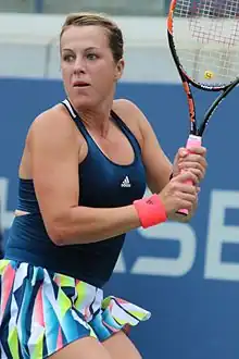 After exiting in the first round of İstanbul, Pavlyuchenkova made her first semifinal of the year the following week in Baku by defeating Elizaveta Kulichkova, Kateryna Bondarenko and Kirsten Flipkens. There, she was upset by Romanian Patricia Maria Țig.[70] She then advanced to her first final of the season at the Washington Open, her second at the tournament, but was denied the title once again, this time by American Sloane Stephens.[71] At the Cincinnati Open, Pavlyuchenkova advanced to the last eight but was defeated by third seed Simona Halep.[72] At the US Open, 31st-seeded Pavlyuchenkova bowed out in the second round to qualifier Anett Kontaveit.[73]