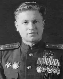 - ↑ Vukolov, Viktor (1973). Дважды Герои Советского Союза. Moscow: Voenizdat. p. 36.