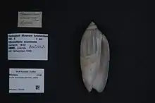 - ↑ Sowerby G.B. II (1859). Monograph of the genus Ancillaria. Thesaurus Conchyliorum 3. World Register of Marine Species, Retrieved 28 April 2010.
