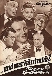 And Who Is Kissing Me? (German: ...und wer küßt mich?) is a 1956 Austrian comedy film directed by Max Nosseck and starring Hans Moser, Grethe Weiser, Theo Lingen and Johannes Heesters, who each play themselves.[1] The film's sets were designed by the art director Felix Smetana. Location shooting took place in Vienna. It is not a remake of the 1933 German film And Who Is Kissing Me?. The film is also known by the alternative title Ein Herz und eine Seele.[2]