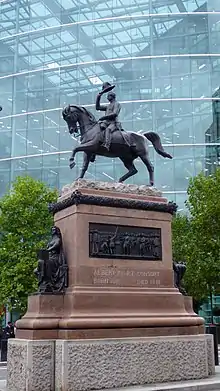 To the west of Holborn Circus there is an equestrian statue of Prince Albert by Charles Bacon (1874)[7] which is the City of London's official monument to him. This bronze statue was originally sited in the middle of the circus and was moved in 2014 as part of improvement works to the junction.