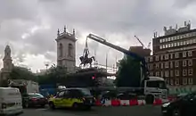 In May 2012 funding was secured for a £4.4 million improvement project to the junction to reduce its high accident rate. Works included the relocation of the statue from the centre of the junction where it obstructed drivers' sight lines to a nearby position on High Holborn.[4] The number of roads feeding into the junction was also reduced from six to five, with St Andrew Street now accessed from New Fetter Lane.