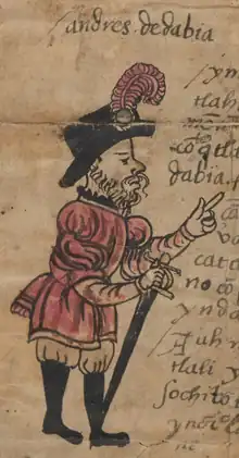 ![]() Andrés de Tapia as depicted in the Manuscrito de Aperreamiento, 1560 | |