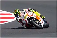 Iannone remained in the class for the 2012 season, finishing second in the season-opening Qatar Grand Prix, having led the race out of the final corner and losing out to the straight line speed of Marc Márquez's bike.[11] He finished fourteenth, fifth and fourth over the next three races, before taking his first victory of the season in the Catalan Grand Prix.[12] He went on to get another podium at Assen. After this, he won his home race at Mugello wearing the colours of a nearby fire station.