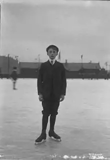 ![]() Andreas Krogh at Bislett Stadion, Kristiania (later Oslo) 24. January 1909.  | |||||||||||||||