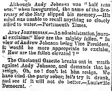35. "Andrew Johnson on the 4th of March". The Lancaster Examiner. May 24, 1865. p. 2.