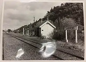 Andrews was opened in 1938 to replace Pitcaithly's railway station. The building at Pitcaithly’s was moved south to Andrews to better serve the population in the rural area on the western side of the valley.[1]