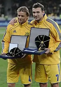 - ↑ "Andriy Shevchenko – Century of International Appearances". RSSSF. Archived from the original on 23 April 2023. Retrieved 8 November 2019.