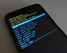 The Android recovery mode is a mode of Android used for installing updates and wipe data.[1][2] It consists of a Linux kernel with ramdisk on a separate partition from the main Android system.