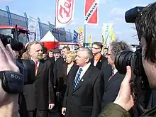 For two years (1978–1980) he was a member of the Polish United Workers' Party (PZPR), Poland's equivalent of a formal communist party during the Polish People's Republic (PRL; 1947–1989). In 1992 Lepper formed his own political party, an organisation of economically struggling farmers like himself, naming it Samoobrona (lit. 'self-defence'; SO).[1] Lepper organised anti-government demonstrations and other actions, most significantly against the politics of the Suchocka and Buzek governments, both characterised by growing social and socio-economic injustice, especially experienced in the Polish countryside.[2]