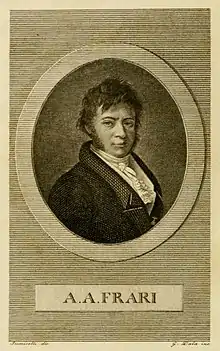 Angelo Antonio Frari (Croat. Anđeo Antun) (Šibenik/Sebenico, Dalmatia, Republic of Venice, now Croatia 1780 – Venice 1865) was a Dalmatian Italian physician, who served as the municipal physician and the head of the lazaretto of Split, province of Spalato (1806–1821), the protomedicus, and the president of the Maritime Health Magistrate of Venice (1835–1843), famous epidemiologist and historian of medicine.