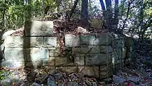Stone bridge abutment for unfinished Manassas Gap Railroad crossing Indian Run Creek, located in Poe Terrace Park, Annandale, Virginia, U.S..