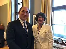 Anne-Catherine Berner (born 16 January 1964) is a Swiss-Finnish[2] business executive, board professional, and the former Minister of Transport and Communications. In 2015, Berner was elected Member of the Finnish Parliament from the electoral district of Uusimaa as a non-attached candidate representing the Centre Party.[3][4] Berner uses Swiss German as her mother tongue within the family, and is fluent in Finnish, Swedish, German, English and French.[5]