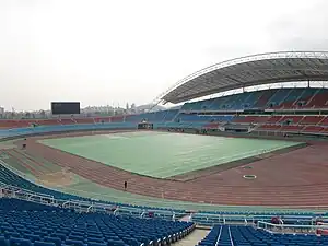 Ansan Wa~ Stadium (Korean: 안산 와~ 스타디움) is a multi-purpose stadium in Ansan, Gyeonggi-do, South Korea. It's currently served as home stadium for Ansan Greeners FC. The stadium was opened in 2007 and has a capacity of 35,000 people. It is used mostly for football matches and athletics. It is located next to Gojan Station on Seoul Subway Line 4.[1][2][3][4]