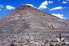 View northeast from the Drum Mountains, showing a sequence of rhyolite flows, vitrophyre, and tuff of Topaz Mountain Rhyolite on Antelope Ridge (USGS photo)