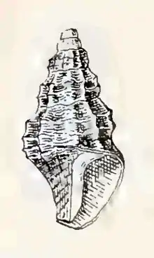 (Original description) The shell is white and chalky. It contains 5 rounded whorls, including a smooth protoconch of about 1½ whorl. The shell is longitudinally vertically ribbed, the ribs strong right up to the suture and persisting faintly down the base. The body whorl shows about nine ribs. Strong spirals cross the ribs, two on the second whorl, three above the aperture, a fourth and faint fifth on the body-whorl. The sutures of the early whorls are sharp. of those succeeding concavely rounded. The base is spirally striated. The type is worn—the protoconch damaged, and the outer lip broken away for a quarter of a whorl. There are spiral striations between the main spirals, and these are strongest on the somewhat hollow infrasutural tabulation. There is no anal fasciole.[2]