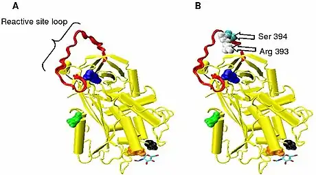 - 1 2 Chang WS, Wardell MR, Lomas DA, Carrell RW (1996). "Probing serpin reactive-loop conformations by proteolytic cleavage". Biochem. J. 314 (2): 647–653. doi:10.1042/bj3140647. PMC 1217096. PMID 8670081.