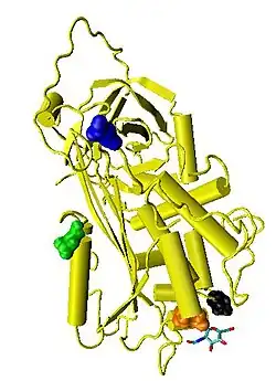 - ↑ Ersdal-Badju E, Lu A, Peng X, Picard V, Zendehrouh P, Turk B, Björk I, Olson ST, Bock SC (1995). "Elimination of glycosylation heterogeneity affecting heparin affinity of recombinant human antithrombin III by expression of a beta-like variant in baculovirus-infected insect cells". Biochem. J. 310 (Pt 1): 323–330. doi:10.1042/bj3100323. PMC 1135891. PMID 7646463.