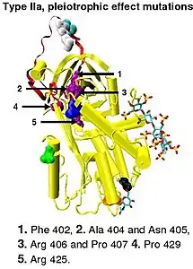 - ↑ Lane DA, Olds RJ, Conard J, Boisclair M, Bock SC, Hultin M, Abildgaard U, Ireland H, Thompson E, Sas G (1992). "Pleiotropic effects of antithrombin strand 1C substitution mutations". J. Clin. Invest. 90 (6): 2422–2433. doi:10.1172/JCI116133. PMC 443398. PMID 1469094.