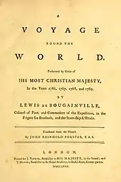 - ↑ Bougainville, Louis Antoine de (1772) [1771]. Voyage autour du monde [A Voyage Round the World Performed by Order of His Most Christian Majesty In the Year 1766, 1767, 1768, and 1769]. Translated by Foster, John Reinhold. London: J. Nourse. p. 32.