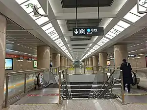 Aotizhongxin (Chinese: 奥体中心站; pinyin: Àotǐzhōngxīn Zhàn) is an interchange station on lines 2 and 9 of the Shenyang Metro.[1] The line 2 station opened on 30 December 2011, and the line 9 station opened on 25 May 2019.[2]