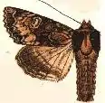 The moth has a forewing length of 20 to 23 millimeters. It is red-brown in color with areas of white, black, and blue-gray. The hindwing is yellow-gray. The head and thorax are dark brown.[1]