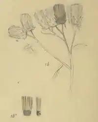 A sprig of Inula conyza (1b), and seeds fastened together and bored by the larva (1b*)