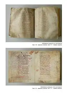 The Apostolus Christinopolitanus is a Cyrillic manuscript of the Acts and Epistles with commentary, written in Church Slavonic of the East Slavonic recension in the middle of the twelfth century. It takes its name from the town of Krystynopol (now Chervonohrad), where it was kept until 1908. The greater part of the manuscript (291 leaves), is now in the Historical Museum in Ľviv (MS 37); a further 8 leaves are in the National Library of the Ukraine in Kyiv (MS VIII.3).[1]