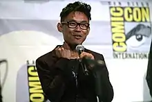 In March 2017, prior to filming, a first look at Aquaman was shown during CinemaCon in Las Vegas, Nevada, with Momoa introducing a video of director James Wan displaying a concept art sizzle reel.[84] Later, on July 22, the film's footage made its debut at San Diego Comic-Con (SDCC) 2017 with a teaser presented by Momoa during the Warner Bros. panel; director Wan presented the footage, stating that "in a lot of ways, this is an origin story,"[85] In April 2018, another teaser, with new footage, was shown by Wan and Momoa at CinemaCon, joined by Amber Heard, Patrick Wilson and Yahya Abdul-Mateen II on stage.[86] Wan teased the conflict between Arthur and Ocean Master, stating that "it's almost a very classic Shakespearean story about brother from another world vs. brother from another world. And it really is a classic story of sibling rivalry."[87]