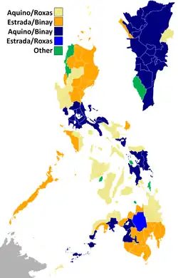- ↑ "Final tally: Binay leads Roxas by 700,000 votes". ABS-CBNnews.com. Retrieved 2010-06-08.