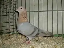 The Arabian Trumpeter is a breed of fancy pigeon developed over many years of selective breeding.[1] Arabian Trumpeters, along with other varieties of domesticated pigeons, are all descendants from the rock pigeon (Columba livia). There are several breeds of trumpeter pigeons which are known for their vocal cooing which sounds similar to laughter or trumpeting. The breeds with this ability are collectively known as "voice" pigeons.