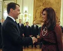 Argentine President Cristina Fernández de Kirchner and Russian President Dmitry Medvedev in Buenos Aires; April 2010.