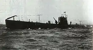 For surface running, the boats were powered by two 750-brake-horsepower (559 kW) diesel engines, each driving one propeller shaft. When submerged each propeller was driven by a 400-horsepower (298 kW) electric motor. They could reach 14 knots (26 km/h; 16 mph) on the surface and 8 knots (15 km/h; 9.2 mph) underwater.[1] On the surface, the Settembrini class had a range of 5,000 nautical miles (9,300 km; 5,800 mi) at 8 knots (15 km/h; 9.2 mph);[2] submerged, they had a range of 110 nmi (200 km; 130 mi) at 3 knots (5.6 km/h; 3.5 mph).[1]