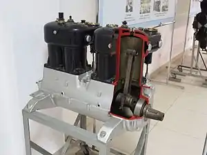 It had a bore of 124 mm (4.88 in) and a stroke of 130 mm (5.12 in) and produced about 45–55 hp (34–41 kW) at 1200–1300 rpm[3][4] and was produced in two variants, with the valves and camshaft on the right[3] or on the left side[5] respectively.