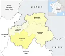 - ↑ "Arrondissement de Bonneville (742)". INSEE. Retrieved 2019-10-03.