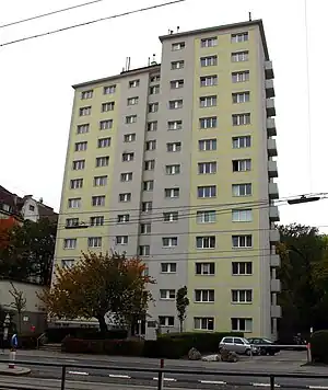 The Arthur-Schnitzler-Hof is a residential tower block in Döbling (City District 19), a quarter on the northern side of central Vienna. It was built between 1959 and 1960, according to plans produced by the architects Michel Engelhart and Alois Machatschek. It comprises 47 residential apartments.[1]