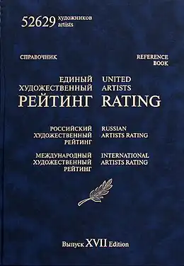 - Artists Trade Union of Russia regularly publishes the reference book "United Art Rating" (called "United Artists Rating" before 2012).[3] The reference book "United Art Rating" has been published since 1999 as a periodical reference book, registered as mass media. As of 2016, it has stood 22 printed editions, total number of printed copies is more than 90000.[4] The electronic version is also available.[5] On January 1, 2016, United Art Rating included the names, dates of life and rating categories of 58965 artists (painters, graphic and poster artists, theatre decorators, batik painters, illustrators, animators, sculptors, jewelers, ceramists, authors of installations etc.).