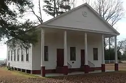 Asbury Methodist Church, also known as Asbury Memorial Church and Asbury Methodist Episcopal Church South, is a historic Methodist church located at Raynham, Robeson County, North Carolina. It was built in 1861, and is a one-story, timber-frame building in a modest Greek Revival style. It measures approximately 40 feet by 50 feet and features a prominent, projecting, pedimented front gable supported by five posts. Adjacent to the church is the contributing cemetery with approximately 200 marked graves. The oldest grave dates to 1848.[2]