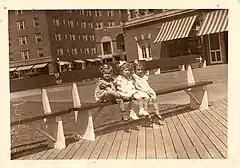 Bradley was active in the development of much of the city's infrastructure, and despite his preference for gas light, he allowed the Atlantic Coast Electric Company (precursor to today's Jersey Central Power & Light Co.) to offer electric service.[36] Along the waterfront, Bradley installed the Asbury Park Boardwalk, an orchestra pavilion, public changing rooms, and a pier at the south end of that boardwalk. Such success attracted other businessmen. In 1888, Ernest Schnitzler built the Palace Merry-Go-Round on the southwest corner of Lake Avenue and Kingsley Street, the cornerstone of what would become the Palace Amusements complex; other attractions followed.[37] During these early decades in Asbury Park, a number of grand hotels were built, including the Plaza Hotel.[38]