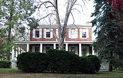 Ash Hill, or Hitching Post Hill, is a two-story brick dwelling erected ca. 1840, and located on Rosemary Lane, in Hyattsville, Prince George's County, Maryland. The house was built by Robert Clark, an Englishman who was seeking space and quiet in contrast to the crowded city of Washington, D.C. In 1875, General Edward Fitzgerald Beale bought the property. Beale was well connected and known to have entertained President U.S. Grant (a close personal friend who kept his two Arabian horses, Leopard and Linden, stabled at Ash Hill), President Grover Cleveland and Buffalo Bill Cody. The house, with its foot-thick brick walls and hilltop site, is an imposing one, made even more so by the massive pillared porch which surrounds it on three sides. The porch was added by Admiral Chauncey Thomas who purchased the property in 1895.[2]