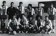 Asteras Tripolis was founded in 1931, in the area near Tripoli's railway station and was formally recognised forthwith. However, the club stayed inactive and during 1932 all football clubs in Tripoli were temporarily dissolved. At the same time, Minas Tsavdaris founded a football club and named it "Keramikos" after his home area.[1] Despite his efforts, Keramikos was never formally recognised, and in 1938 Tsavdaris decided to transfer all of the club's players to Asteras Tripolis, which was still legally recognised.[1] This signified the revival of the club and Asteras Tripolis managed to compete in the inaugural season (1939–40) of the regional Arcadian League. However, the subsequent German occupation of Greece ended all league competitions abruptly and the club was dissolved once again.