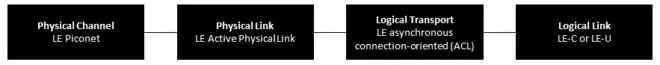 The LE ACL logical transport is used with either an LE-C logical link, which carries control data or an LE-U logical link which is for user data. It is based on an LE Active Physical Link and the LE Piconet Physical Channel. See Figure 1.